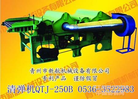 新航機械公司生產的QTJ-250系列雙輥,多輥清彈機,及中間接機器經過多年使用.改進后.可滿足國內國際多種化纖,麻紡,棉紡,毛紡,無紡布等原料的開松.并達到機型緊湊,結構簡單,外型美觀,操作方便,安全可靠,排熱性好,高效低耗的特點.適用于玩具、服裝、制鞋、針織等行業.