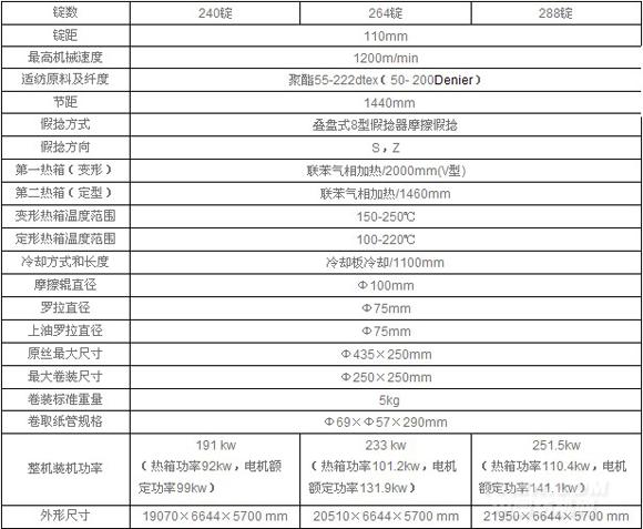 該機主要是將POY原絲(聚酯預取向絲),通過拉伸和假捻變形加工成具有低彈、高彈性能的假捻變形絲(DTY彈力絲),若在設備上選擇增加網絡部件還可以進行網絡絲的加工。