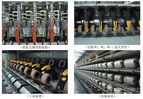 3、采用疊盤式8型假捻器,假捻效果更佳,龍帶驅動假捻裝置,速度控制穩定可靠,W1、W2、W3三道羅拉均采用皮輥式結構,牽伸準確,張力均勻