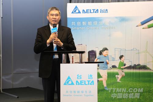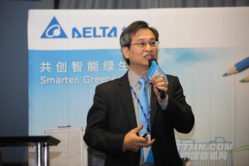 臺達(dá)機(jī)電事業(yè)部張訓(xùn)??偨?jīng)理介紹臺達(dá)所展出之高階工業(yè)自動化系統(tǒng)整合解決方案。