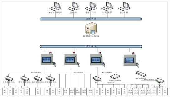 現場監控終端——與數據采集設備實時通訊,對采集的數據多視圖顯示;將采集的數據通過網絡傳輸到數據庫服務器中存儲,并對實時數據進行判斷,超出正常范圍時進行聲光報警;以及根據生產指令進行條碼報工。