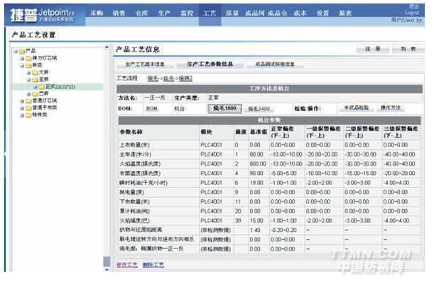 系統根據實時記錄下的機臺歷史操作信息,分產品和工藝建立完備的產品管理檔案。當接到訂單時,系統根據歷史生產數據挑選最佳生產工藝流程,制定機臺最優運轉參數,并指導安排車間生產計劃。