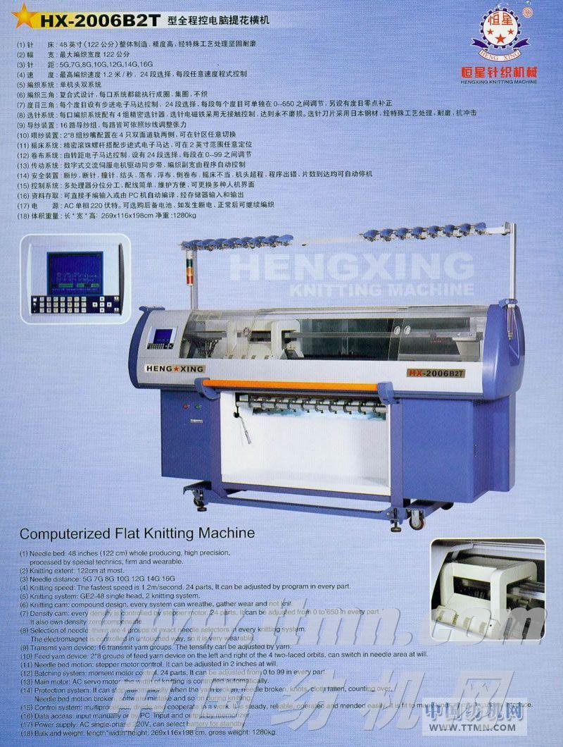 HX-2006B2T型全程控電腦提花橫機 -- 中山市恒星針織機械廠