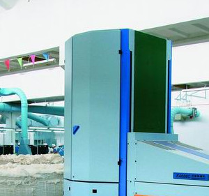 本機是采用世界先進技術,運用先進加工手段設計生產的。該機主要由行走小車、轉塔、抓棉頭、打手、壓棉羅拉、輸棉道、地軌及電氣控制柜組成。間歇下降的抓棉打手隨轉塔作往復運動,對棉包作順序抓取,被抓取的棉束經輸棉管道,籍前方凝棉器或輸棉風機的抽吸送至前方機臺。