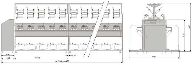 本產(chǎn)品可把2~4股棉、毛、及混紡紗線合并卷繞成并紗筒子,適用于倍捻機(jī)等后道工序的加工。【 產(chǎn)品特點(diǎn) 】>>實(shí)行機(jī)電一體化設(shè)計(jì)制造,結(jié)構(gòu)簡(jiǎn)練,易安裝調(diào)整,操作簡(jiǎn)單方便, 并具有中央電腦程序設(shè)置,單錠電機(jī)、電子定長(zhǎng)、滿筒自停、電子 防疊、變頻調(diào)速、單錠控制、斷紗自停、單錠清零、數(shù)據(jù)記憶、產(chǎn)量 統(tǒng)計(jì)等功能>>可選購(gòu)裝置:隔紗板、空器捻接器、清潔裝置、導(dǎo)輪配置。【 技術(shù)參數(shù) 】