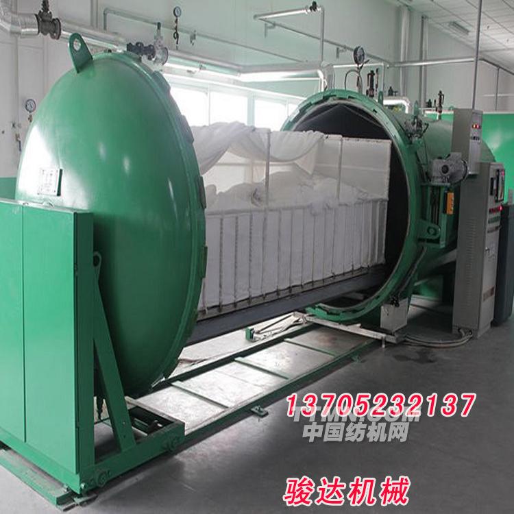 江蘇省金湖縣駿達機械有限公司吸收國外同類產品的精華而研制的新型自動真空蒸紗機,以下簡稱“蒸紗機”具有全自動化控制,生產效率高等優點。成為目前理想的給濕定型設備。它適用于以棉、麻、毛、真絲、化纖等為原料的紡織單位,其用途是將具備織造條件的絲線在合并加捻后進行給濕定型,即在多次真空和一定溫度范圍下增加濕度,降低紗線伸縮率,改善產品手感、光澤度,提高紗線張力、強度,同時消除靜電及各部分的不平衡應力。該蒸紗機的使用特點是:適用范圍廣泛,定型后產品的物理性能如:強力、伸長度等不受影響,同時使針織效率提高10%;整經、織造效率提高15%;又使染色布均勻,還可以降低失重率.