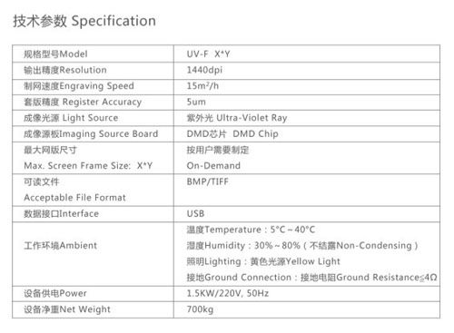 東城紫外平網直接制網機是新一代電腦直接制網設備,采用DMD掃描成像技術,將DMD投射出來的數據影像,通過X方向的連續掃描和Y方向的步進掃描運動,完成大幅面印花花型的成像。