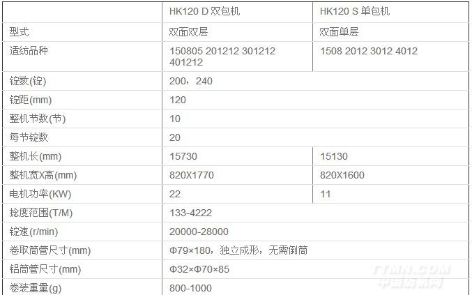 HK120型包紗機中外技術合作,結合日本片岡技術的氨綸包覆紗機,專門為生產細旦包覆紗產品而精心設計,針對細旦包覆紗在紗線條干、捻度均一性、退繞性能以及風格上的更高要求,在機器絲路部件、傳動方式、電力消耗、紗卷成形等方面都做了特別的處理。本產品具有高速、高效,占地面積小,成紗質量優異,節能等顯著特點,特別適用于2008、2010、2012等規格包覆紗產品的生產。其最終產品主要應用于高檔針織品(如:天鵝絨超薄襪、無縫內衣等)以及高檔機織面料(如:高檔襯衣面料)。