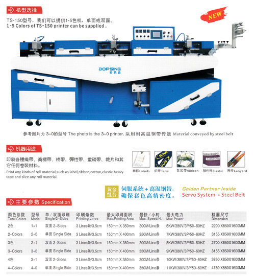 TS一150型號,我們可以提供1-5色機,單面或雙面。機器用途: