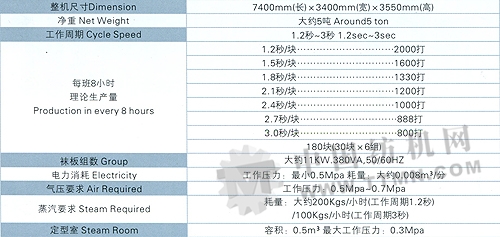 4、最短工作周期1.2秒,最大產量每天8小時班產2000打(按理論數據統計算)。