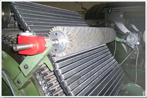 目前梳棉機已大量采用金屬針布,而且縱橫齒密向著更高的方向發(fā)展。為保持針尖的鋒利度,提高梳理效果,過去用的磨針工具及磨針方法不能達到上述目的,因此我公司又開發(fā)了一種多功能刷磨裝置。(專利號:200520003872.X)該產(chǎn)品采用了含有金剛砂磨料的強力尼龍絲制成的毛刷。