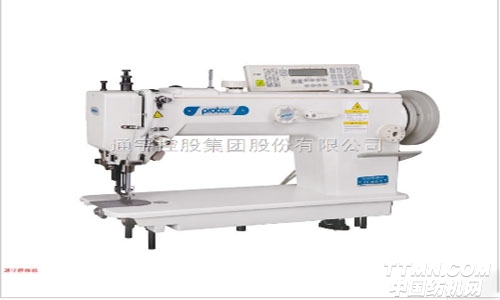 高速單針長臂厚料四自動電腦雙同步上、下送料平縫機。上下軸通過傘齒輪傳動實現1:2傳動比,通過兩倍量厚料大旋梭勾直針線形成301鎖式線跡。具有自動剪線,自動倒縫,自動掃線,自動抬壓腳功能。還有定寸縫,補針,前后加固縫,模式縫等功能。其獨特的輔助壓腳功能更加適合縫制皮革和厚料:該特性使機器在吃厚和過骨縫合時,更加順暢。