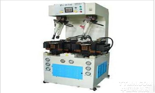 自動平衡壓桿及偏擺機構:兩支壓桿之高低調整采用油壓自動平衡結構,對于鞋楦之高低變化均免調整,并確保2支壓桿之壓力平均,使鞋底之壓著力量更均勻。兩支壓桿可同時做偏擺動作,以利鞋楦之取放,一改舊式機臺壓桿為固定式,操作不便之問題。(專利權字第77582號)