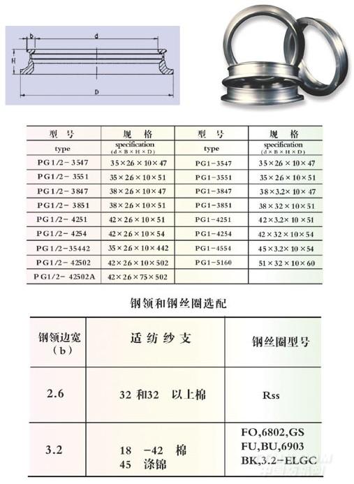 PG型鋼領適用于棉或化纖環錠細紗機和捻線機。
