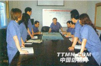 董事長兼總經理施越浩給國際貿易部、國內營銷部的職員分析形勢,強調現代企業的經營理念的營銷對策。