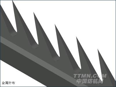 本公司生產的豐衣牌金屬針布,系采用先進的高頻退火技術和先進的沖、淬、卷生產線所生產的產品。本產品博采國內外同類產品之長,具有矮、淺、尖、密、小、薄六大特點,而且齒形設計合理,耐磨性能好,基部柔軟,包卷順利,適紡棉高、中、低支紗及化纖。經使用普遍反映不僅棉網清晰度好,棉結癖點少,而且不嵌破籽,因此是配用高產、高速梳棉機是為理想的梳理元件。
