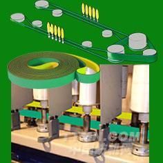 高效雙面?zhèn)鲃?dòng)帶.特別適用于紡織行業(yè)的高速切向和動(dòng)力傳動(dòng).如轉(zhuǎn)杯紡紗機(jī)、倍捻機(jī)、加彈機(jī)、花式捻線機(jī)。