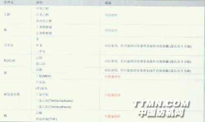 建議之化學品/溶劑
