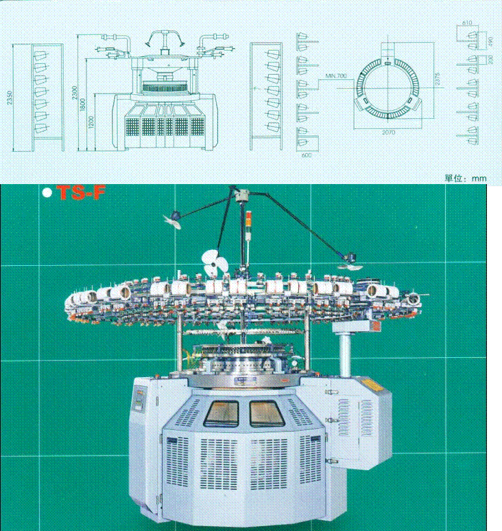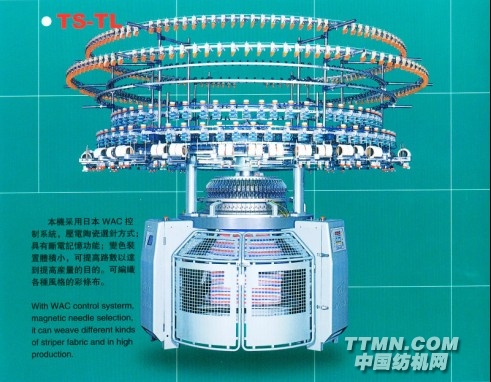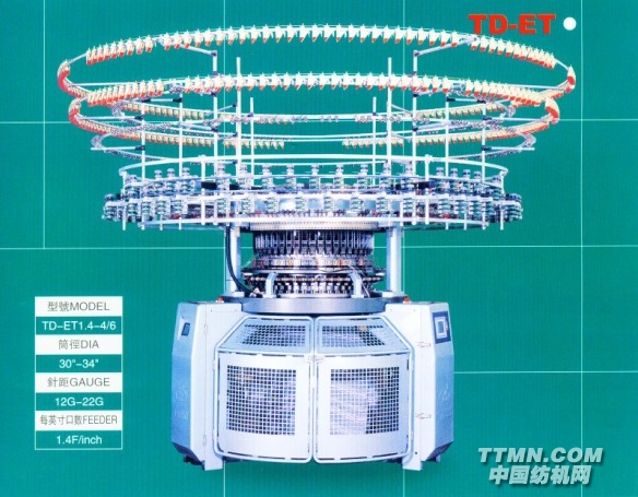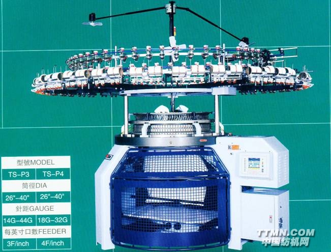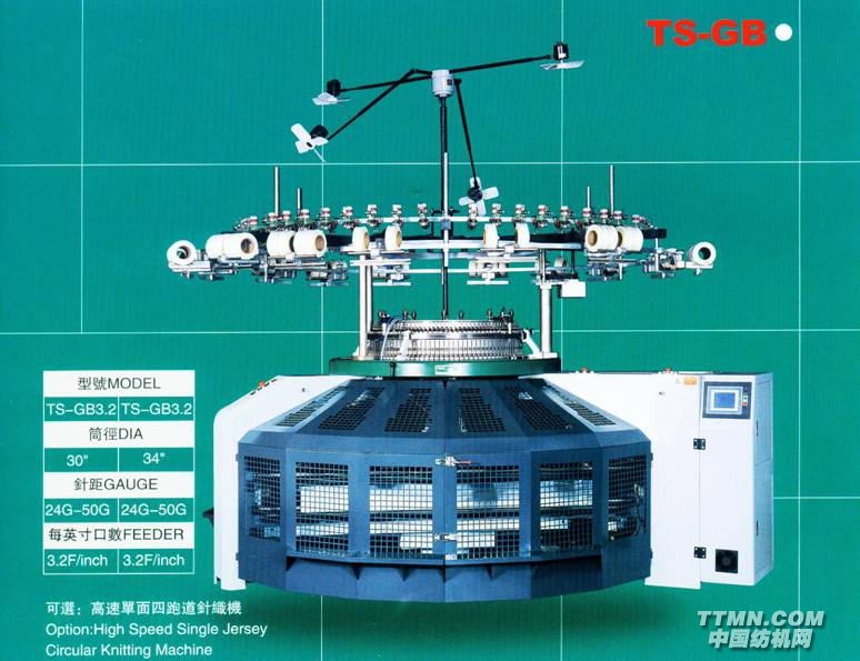 采用四跑道山角設計;布面細膩;外形筒潔。適用原料廣泛,可編織各種風格的單面組織如:平紋布、PK、珠地綱眼、氯綸彈力織物等。特別是運動型T恤產品,更適合于在小筒徑單面機上生產。