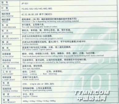 JP-501電腦橫式編織機