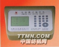 界面簡潔明了,可顯示中文或英文菜單,程序直接由鍵盤輸入,全部以數字表示,輸入快速簡易,程序儲存量大,可用U盤復制備份人,編輯與修改容易。LCD液晶顯示程序行數。總行數、設定片數、織速、卷速、搖床、行數、紗嘴位置、三角動作、循環狀態、度目密度,自動偵錯,單片停機等。