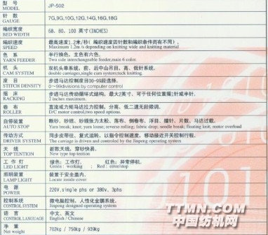 JP-502電腦橫式編織機