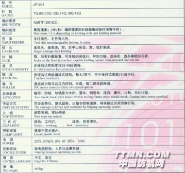 JP-601電腦橫式編織機
