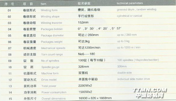 3、擁有專利技術(shù)的高速卷繞系統(tǒng),出紗速度高達(dá)150米/分。特別適合低支弱捻紗線的加工。