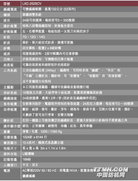機器主要功能參數: