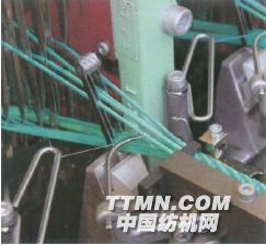 ③ VARITEX V5MJ 4/65 型提花織帶機條帶數 4 條,配 J192 型提花機,384 針,適用織造彈性和非彈性經提花條帶織物。展機配有加強收帶裝置,開口機構為花鏈片控制 2 片綜框。