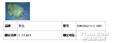 無錫市亨達電機有限公司在《2010年中國國際紡織機械展覽會暨ITMA亞洲展覽會》展出的是亨達FXM100L2-2-2.2KW。