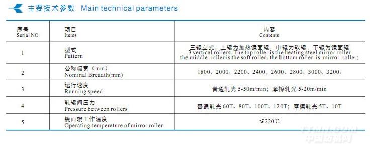 由三支軋輥組成主體部分,加工時織物順序通過下軋點與上軋點,摩擦輥按規定的摩擦率超速運轉產生摩擦作用,從而使織物產生很強的極光和很好的柔軟手感。摩擦輥通常比其他兩輥筒超速30%300%,摩擦率視工藝需要而定,一般用30%,高光澤制品50%-75%,書面布150%-300%。本機也可進行普通軋光工藝。