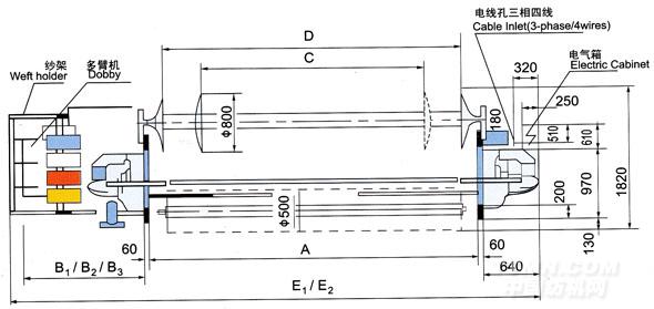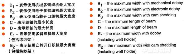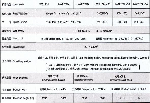 JWG1724系列劍桿織機主要規格尺寸
