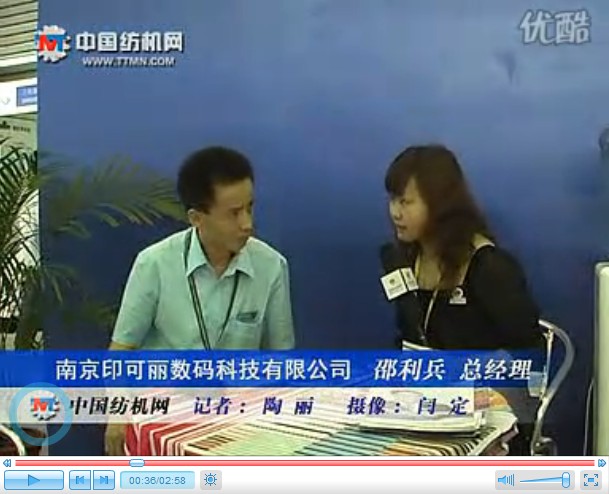 您所在的位置:紡機網-ITMA-現場采訪-訪南京印可麗數碼科技有限公司總經理 邵利兵