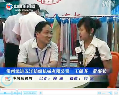 今年六月,2010年中國國際紡織機械展覽會暨ITMA亞洲展覽會在上海舉行。在展會現場,武進五洋紡織機械有限公司董事長王敏其先生接受了記者的采訪。