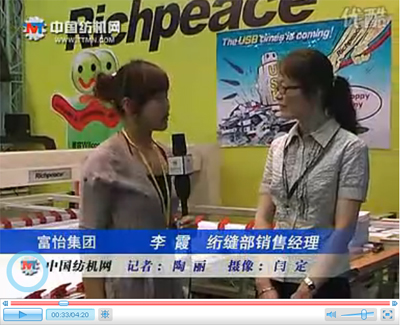 今年六月,在2010年中國國際紡織機械展覽會暨ITMA亞洲展覽會上,富怡集團絎縫部銷售經理李霞女士接受了記者的采訪。