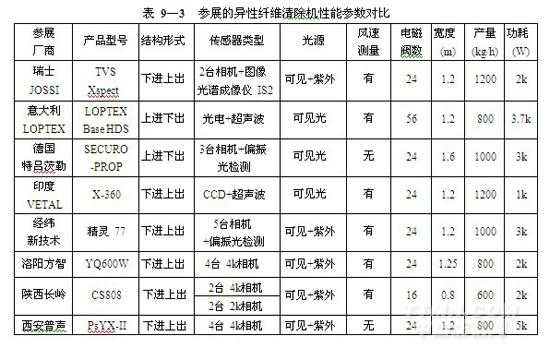 (1)參展的異性纖維清除機性能參數 (表 9—3)