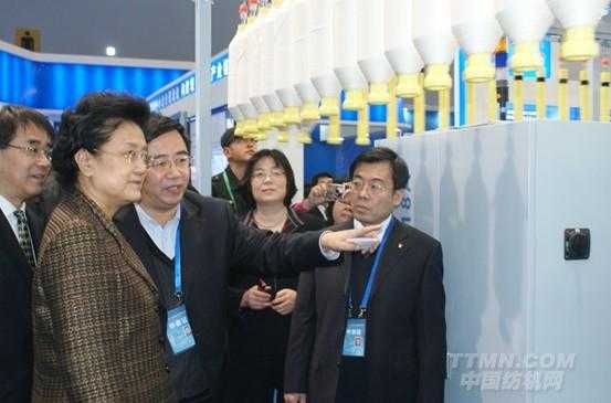 國(guó)務(wù)委員劉延?xùn)|參觀國(guó)家十一五成就展經(jīng)緯粗細(xì)絡(luò)聯(lián)合機(jī)展臺(tái)