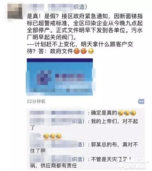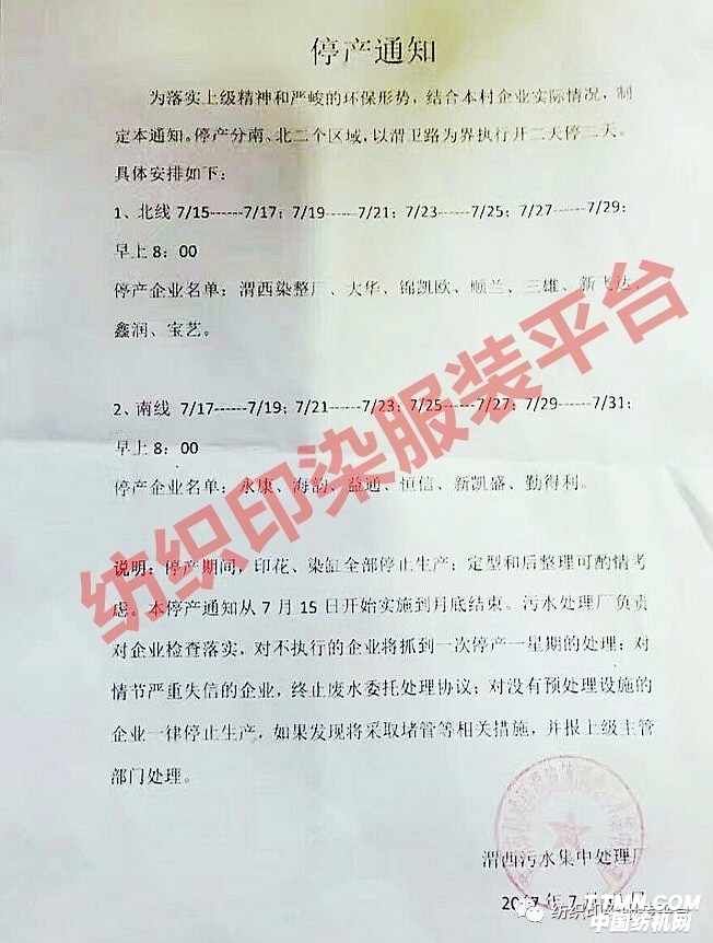 江蘇印染停產整治風暴來襲,7月27日又一張停產通知下發,這已經是臨時停車第二次了!看看你們廠要停嗎?那些訂單做一半要交期的哭暈在廁所里~~~