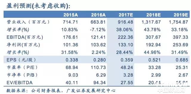 在本次交易前,公司已經(jīng)是國(guó)內(nèi)織襪行業(yè)的龍頭企業(yè)。而本次擬收購(gòu)的標(biāo)的俏爾婷婷是國(guó)內(nèi)領(lǐng)先的無(wú)縫內(nèi)衣制造商。由于無(wú)縫服裝省去了裁剪和縫紉等勞動(dòng)力需求最大的工序,使得無(wú)縫服裝生產(chǎn)企業(yè)在生產(chǎn)自動(dòng)化程度上相較于傳統(tǒng)服裝廠商具有較大優(yōu)勢(shì)。根據(jù)公司5月20日披露的交易預(yù)案,當(dāng)前無(wú)縫內(nèi)衣在內(nèi)衣市場(chǎng)的整體占比不到10%, 但是近兩年增速較快。我們認(rèn)為本次交易完成后,將進(jìn)一步鞏固公司在上游內(nèi)衣制造行業(yè)的優(yōu)勢(shì)地位。同時(shí),根據(jù)上市公司與俏爾婷婷簽訂的《盈利補(bǔ)償協(xié)議》,標(biāo)的公司承諾2017-19年凈利潤(rùn)分別不低于6500萬(wàn)元,8000萬(wàn)元,9500萬(wàn)元。如果俏爾婷婷能夠?qū)崿F(xiàn)業(yè)績(jī)承諾,也將有助于增厚公司業(yè)績(jī)。