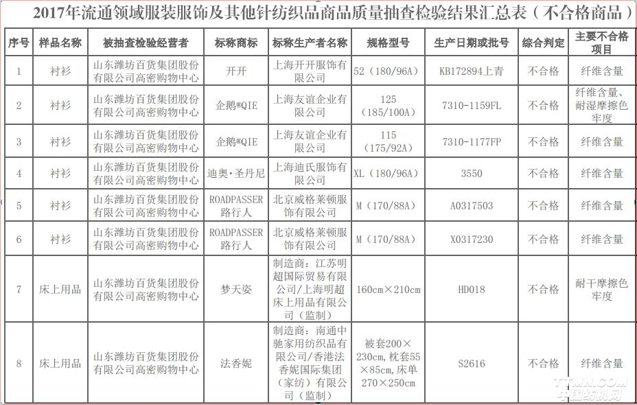 2018年1月11日,山東省工商局官網(wǎng)發(fā)布濰坊市工商局2017年流通領(lǐng)域建筑裝修材料、服裝服飾及其他針紡織品、金屬制品商品質(zhì)量抽查檢驗(yàn)結(jié)果。結(jié)果顯示,濰坊市工商局承擔(dān)山東省工商局流通領(lǐng)域建筑裝修材料、服裝服飾及其他針紡織品、金屬制品商品質(zhì)量抽查檢驗(yàn)任務(wù)。