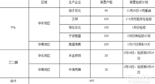 化纖產(chǎn)業(yè)鏈上游工廠春節(jié)期間裝置檢修計劃表