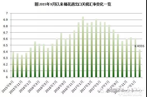 中國(guó)人民銀行授權(quán)中國(guó)外匯交易中心公布,2018年1月17日銀行間外匯市場(chǎng)人民幣匯率中間價(jià)為:1美元=6.4335元人民幣,因此2018年2月份進(jìn)出口貨物關(guān)稅匯率將按1美元=6.4335元人民幣計(jì)算。望有進(jìn)出口業(yè)務(wù)的棉花和紡織企業(yè)注意。(2018年1月份為6.6066)