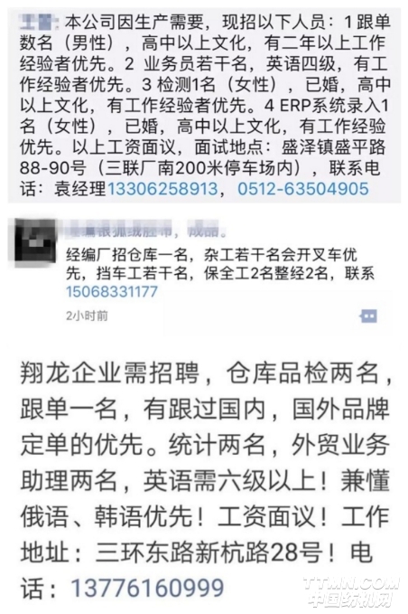 近幾年,招工難、用工貴似乎一直是紡織行業的老大難問題。春節歸來,紡織企業在新年開工之初,都不約而同地把招工作為了近期的工作重心。這兩天,估計大家在朋友圈、微信群里看到最多的是各式各樣的招工信息吧!