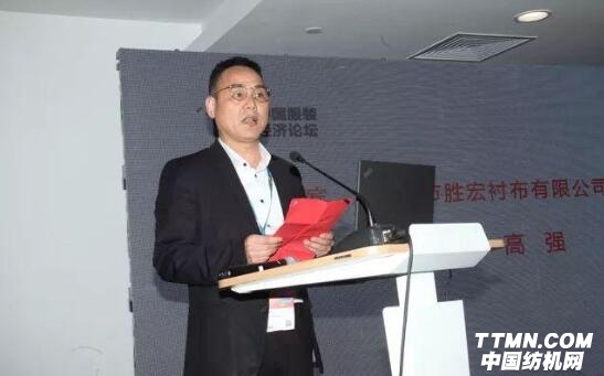 論壇開始,首先,廣州市勝宏襯布有限公司董事長高強向論壇致辭。他說,當前是中國服裝產業轉型升級的關鍵時期,服裝行業的轉型升級,離不開關聯產業的支持與參與,他說:“服裝品質的好壞,和面料、工藝有著很大關系,同時,也離不開襯布的重要作用。襯布為服裝提供骨架和支撐,優質的襯布可以為優秀的工藝和面料錦上添花。”