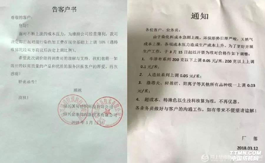 (3月13日)最新出爐的江浙印染企業漲價單