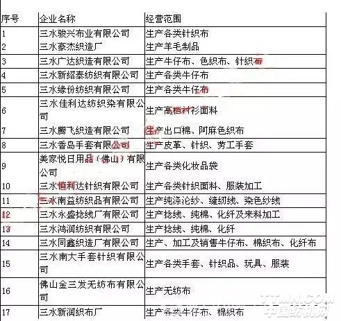 三水區紡織商會企業名單(37家)