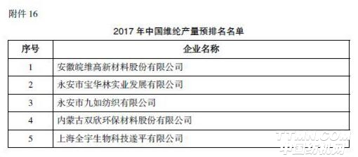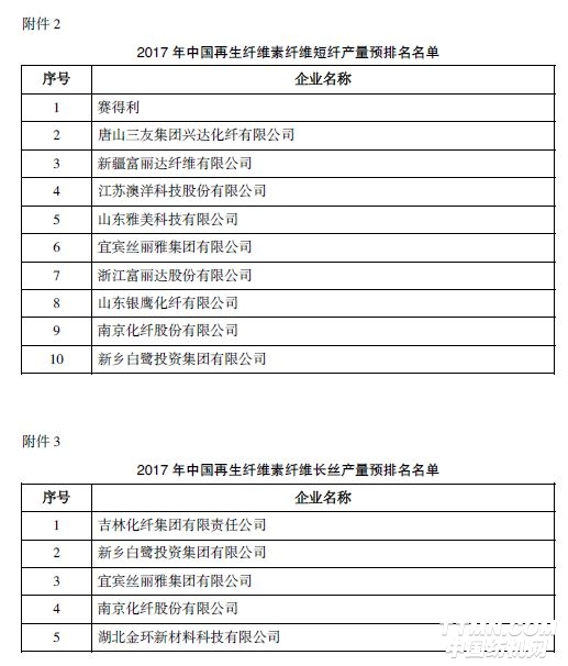 賽得利、唐山三友集團(tuán)興達(dá)化纖有限公司、新疆富麗達(dá)纖維有限公司、江蘇澳洋科技股份有限公司、山東雅美科技有限公司排名“2017年中國(guó)再生纖維素纖維短纖產(chǎn)量預(yù)排名”前五名。