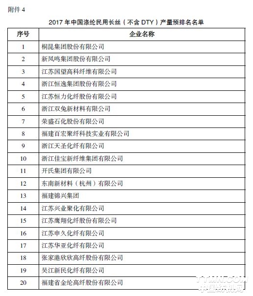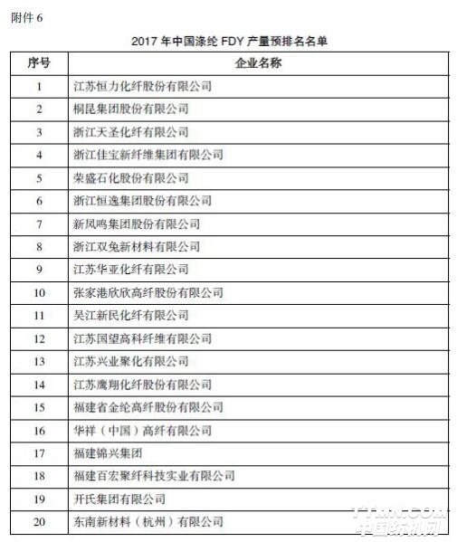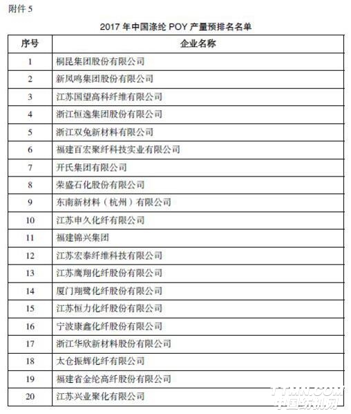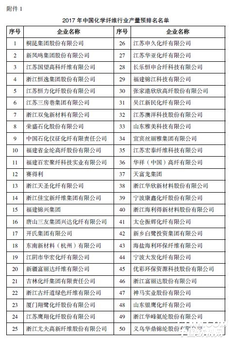 其中,桐昆集團(tuán)股份有限公司、新鳳鳴集團(tuán)股份有限公司、江蘇國(guó)望高科纖維有限公司、浙江恒逸集團(tuán)股份有限公司、江蘇恒力化纖股份有限公司排名“2017年中國(guó)化學(xué)纖維行業(yè)產(chǎn)量預(yù)排名”前五名。