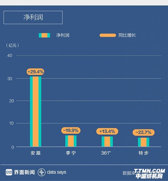 安踏的凈利潤為30.9億元,361°則達到4.57億元,兩者獲得不同程度的增長。